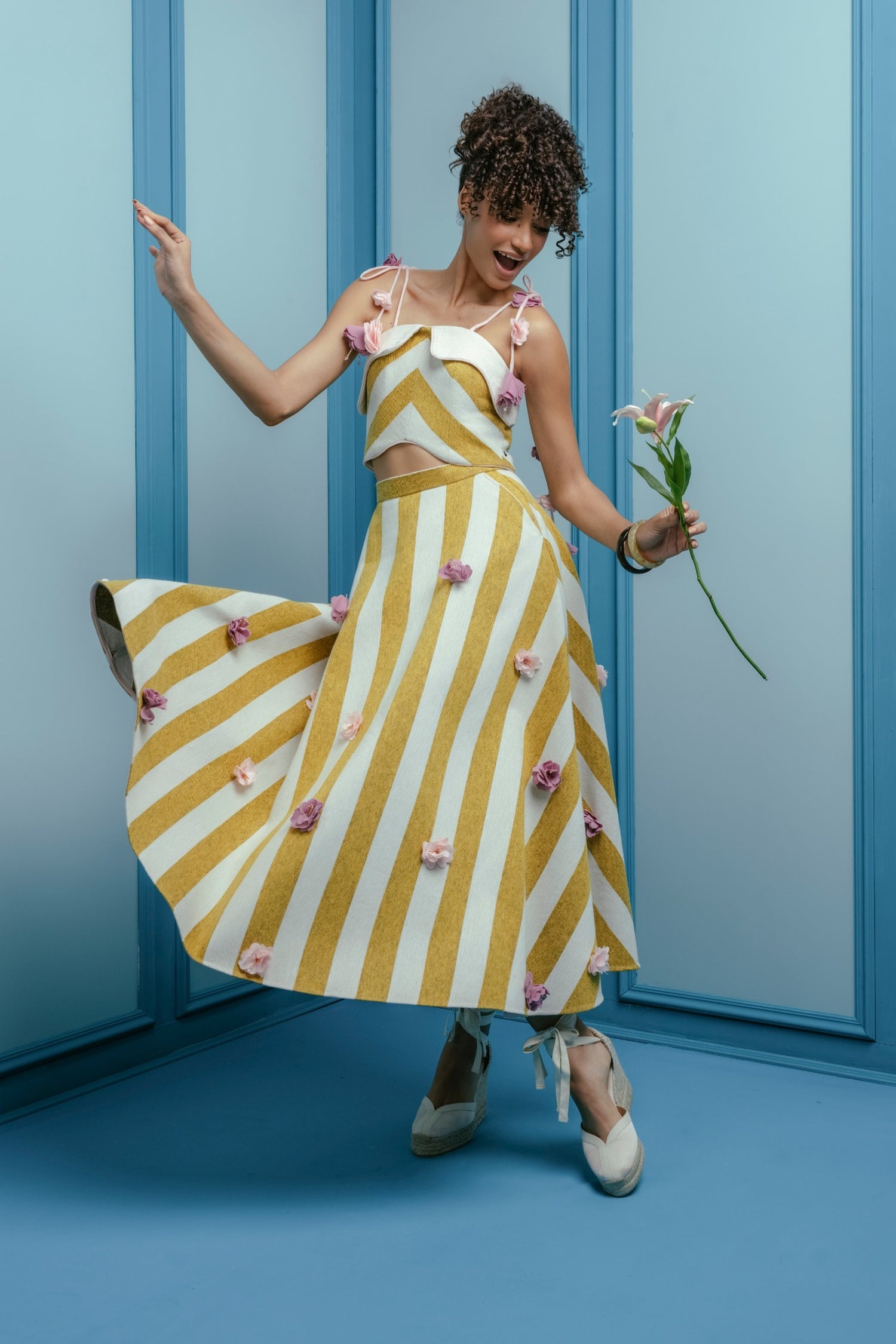 Abryl Skirt Blanco y Rayas Negras