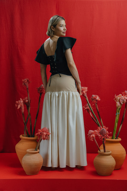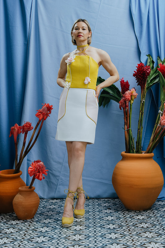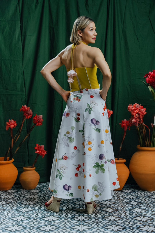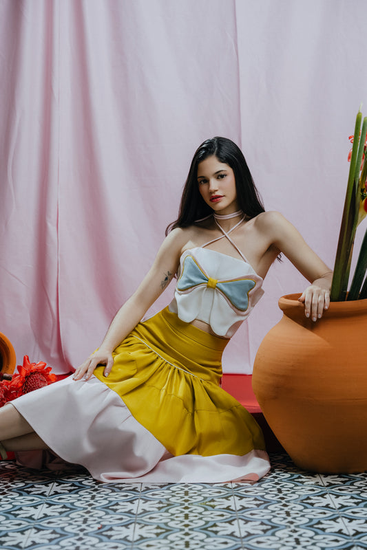 Ellie Midi Skirt Amarillo y Rosado Claro