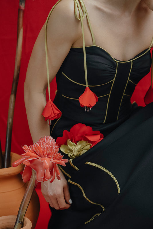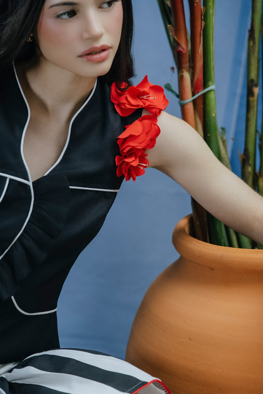 Sara Top Negro y Flores Rojas