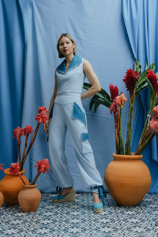 Tyta Top Azul Claro y Turquesa