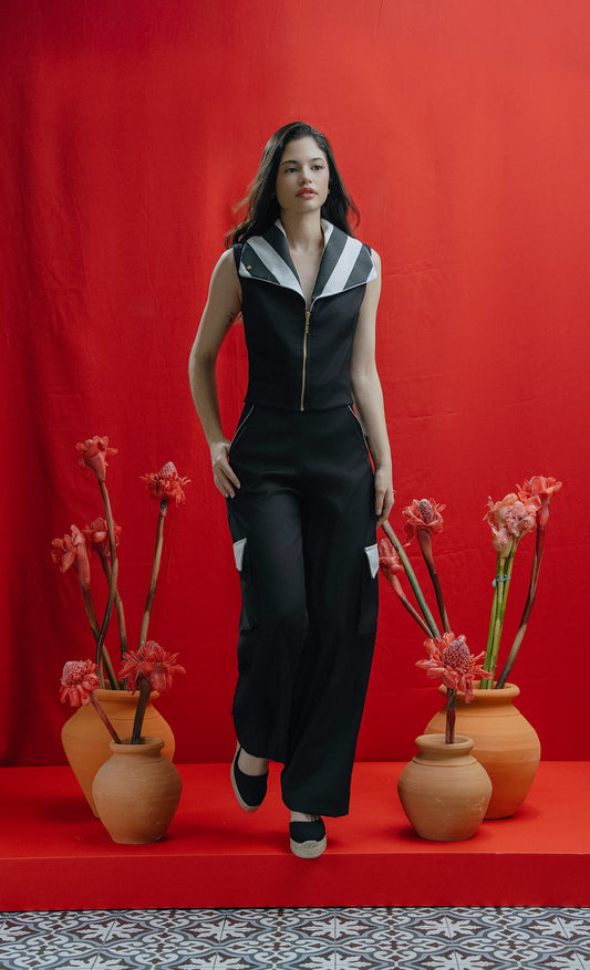 Tyta Top Negro y Rayas Blancas