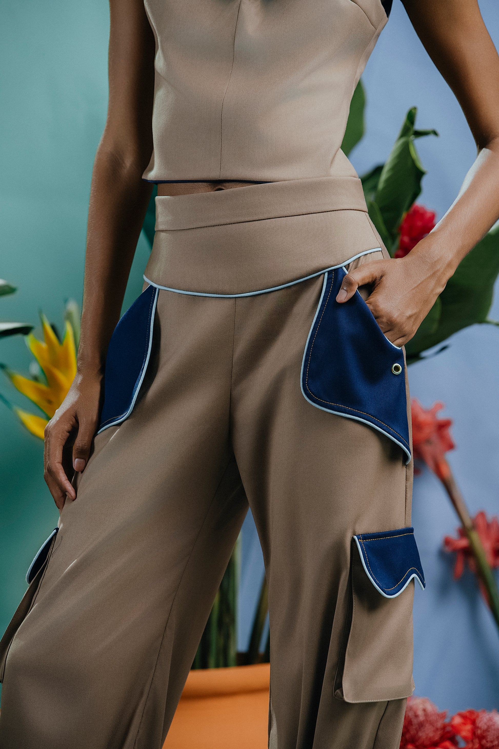 Morocco Pant Beige y Azul Marino